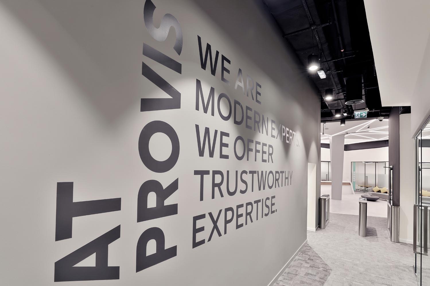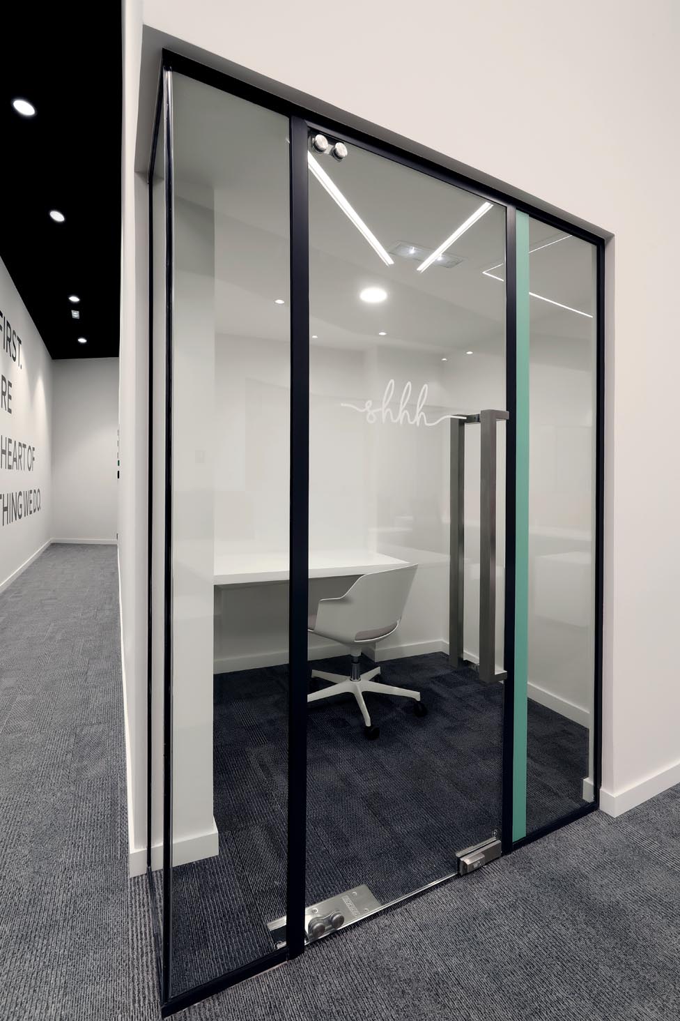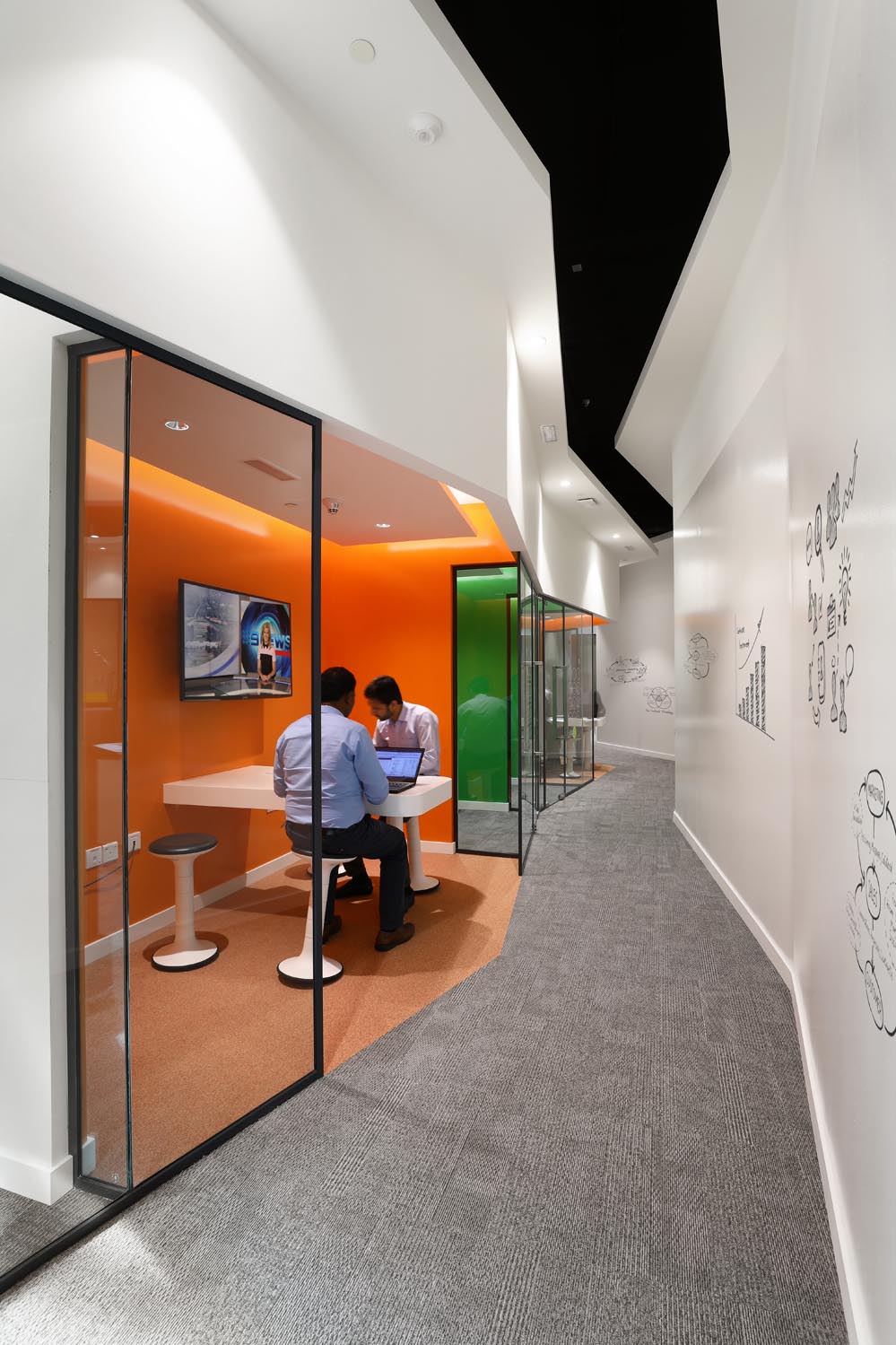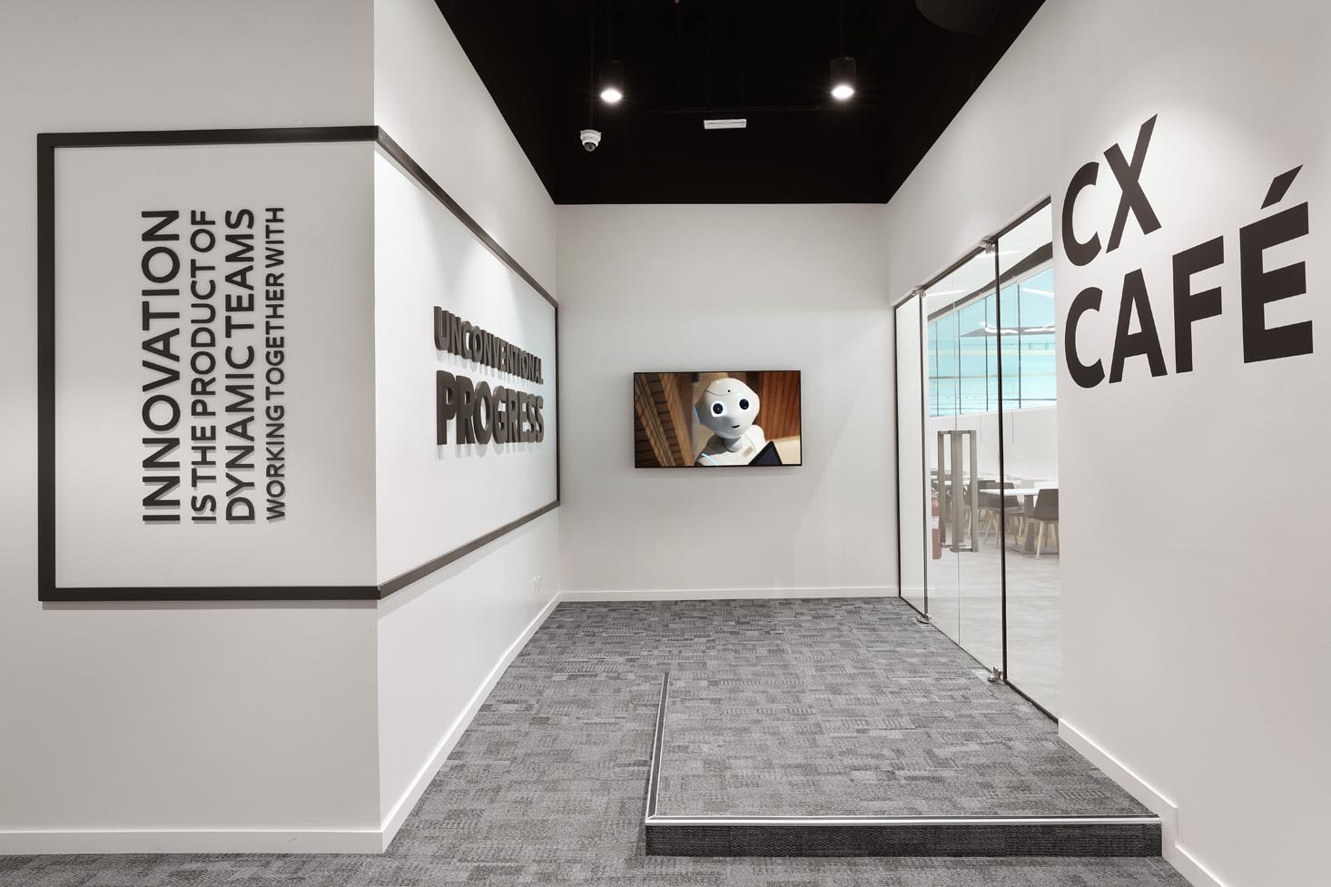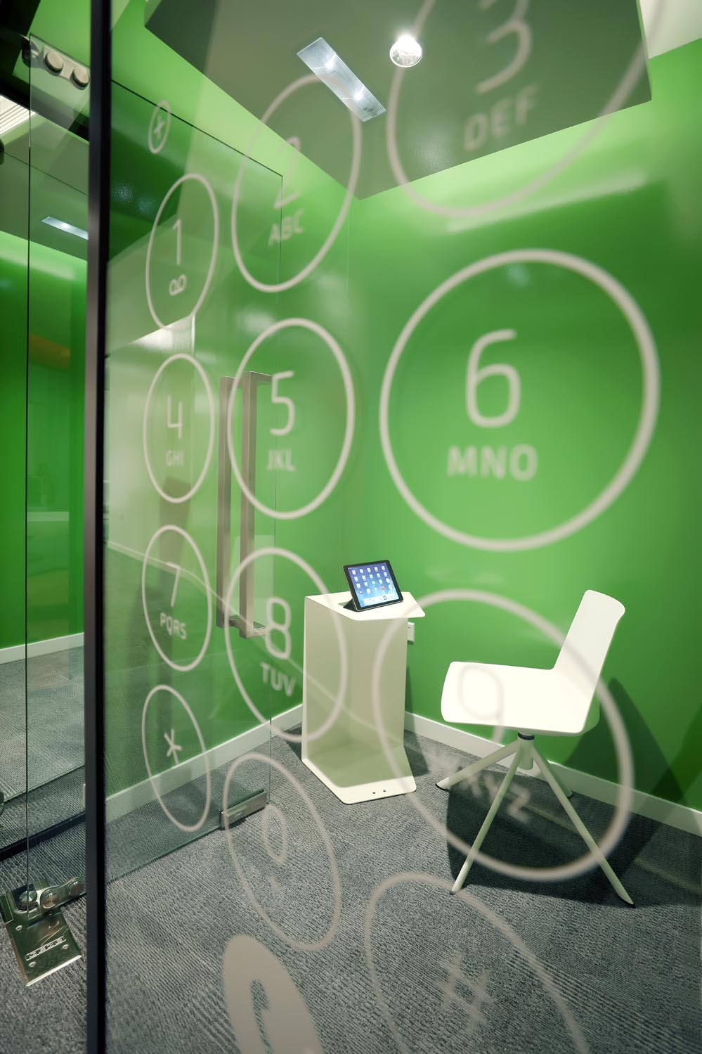 The design makes full use of the exceptional internal height of 5,35 m. and is centered around a series of open spaces which are interconnected by 3D and 2D faceted ceilings. The original, space which was completely windowless, has been radically transformed via a series of spot demolitions which created a new ample glazed facade on the north perimeter of the unit, as well as 7 skylights on the roof which diffuse natural light on the working space below. Project includes open workstations, enclosed offices for managers and dept. heads, C-level suites, CEO office, board meeting room with majilis, 5 meeting rooms, training room, informal meeting spaces, phone booths, call center, break-out area with pantry, server room and storages.