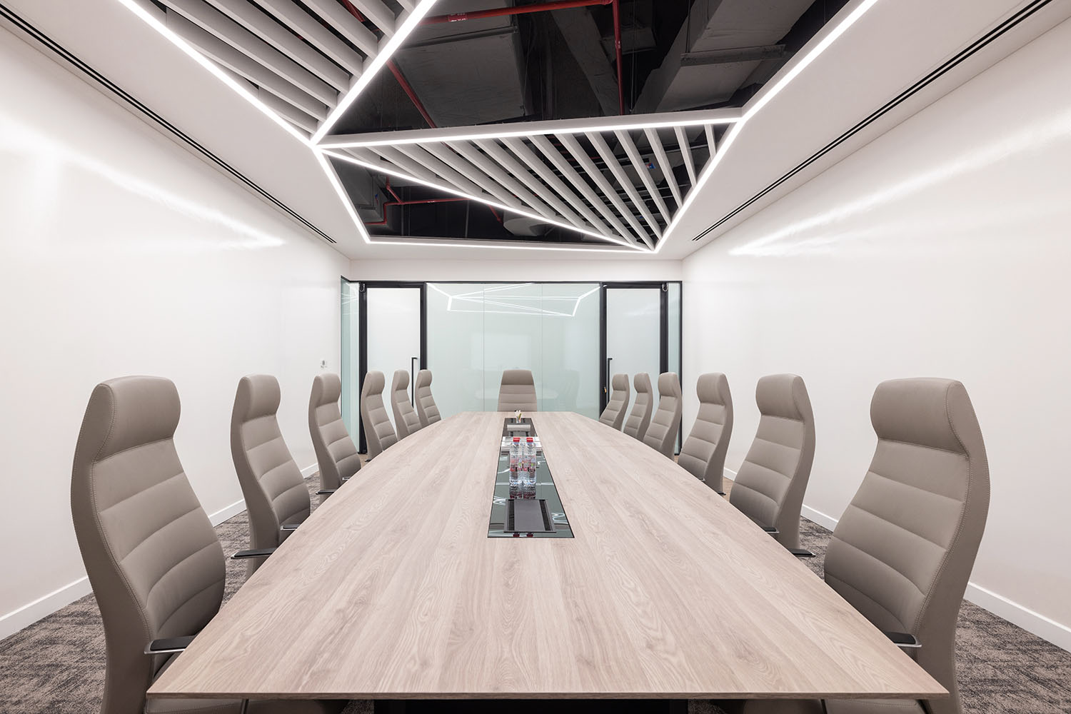 providing ample space for discussions and brainstorming sessions. For larger gatherings and high-level discussions,