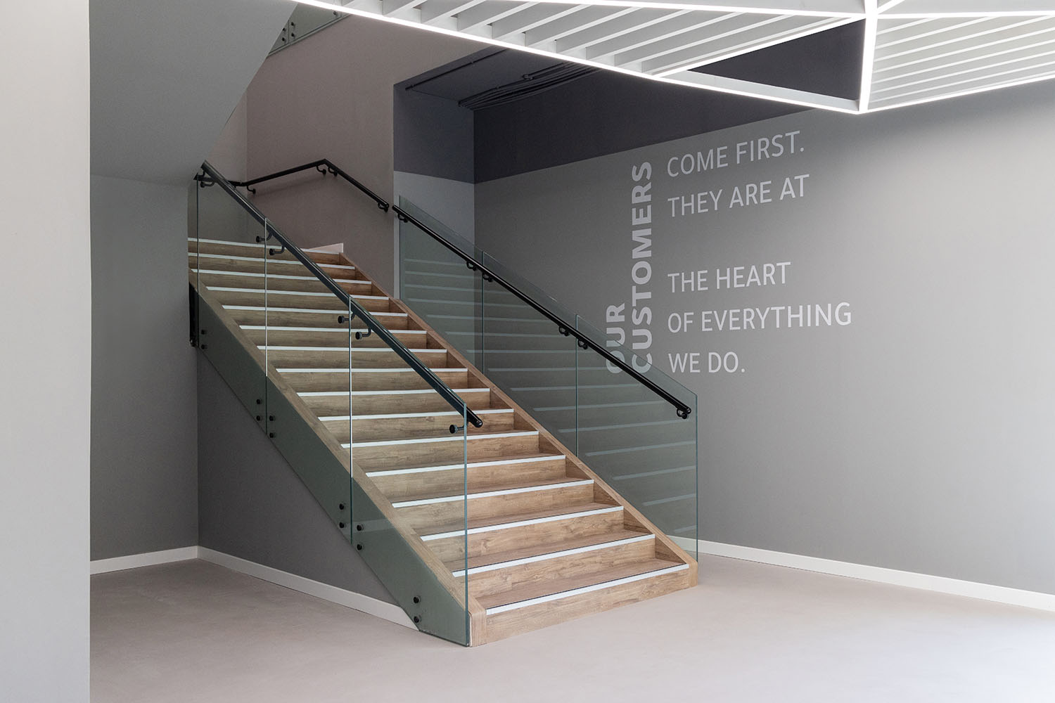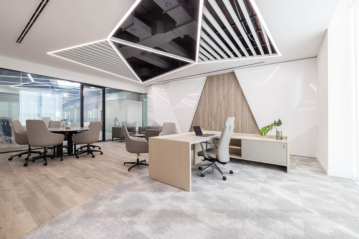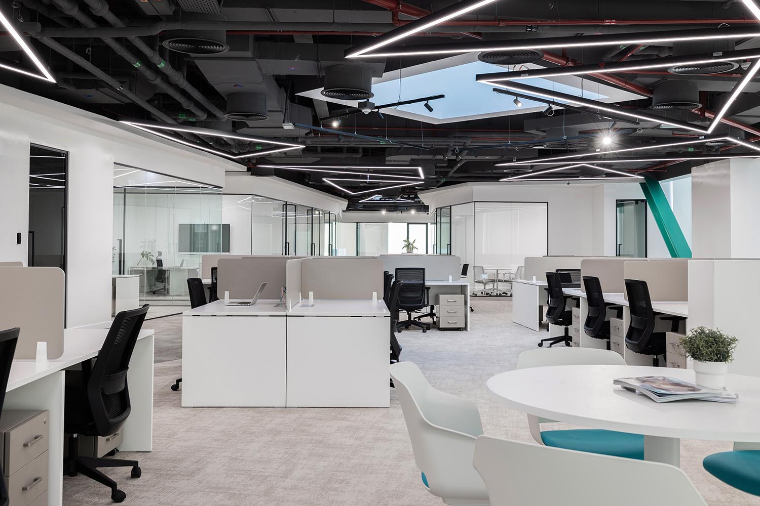 The new office space incorporates various key elements to enhance its functionality and sustainability.