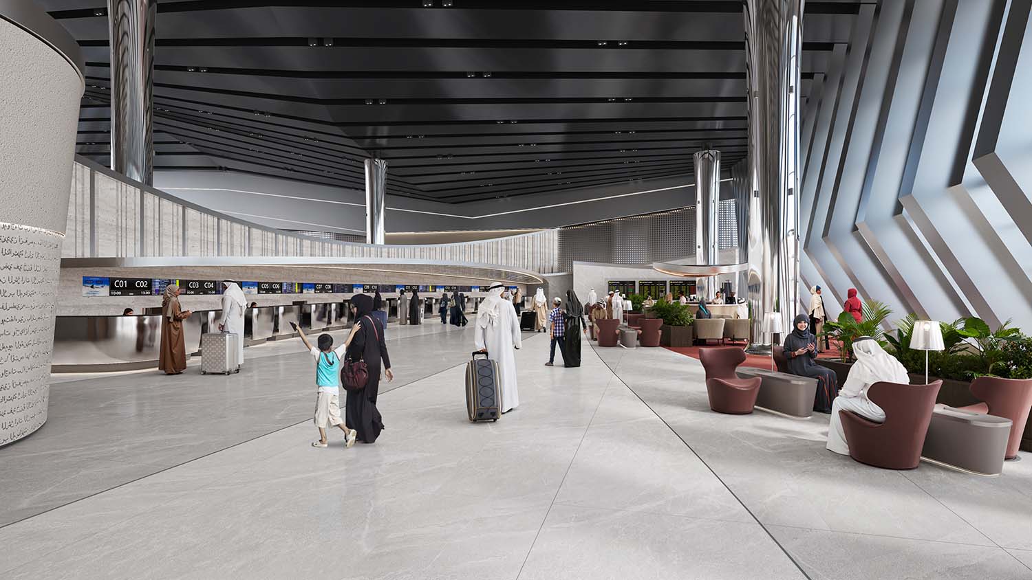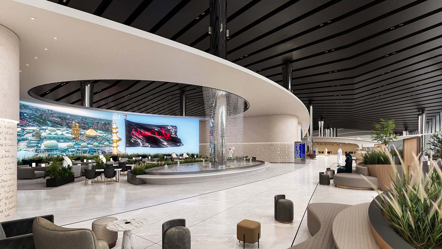 The concept and theme revolve around a significant event. The roof is designed to replicate the movement symbol inspired by the flag placed on the Imam Hussain Shrine. The word “Umma” (unity through diversity) is designed in traditional calligraphy for the facade. Altogether, unity is prevailing by holding up the flag of